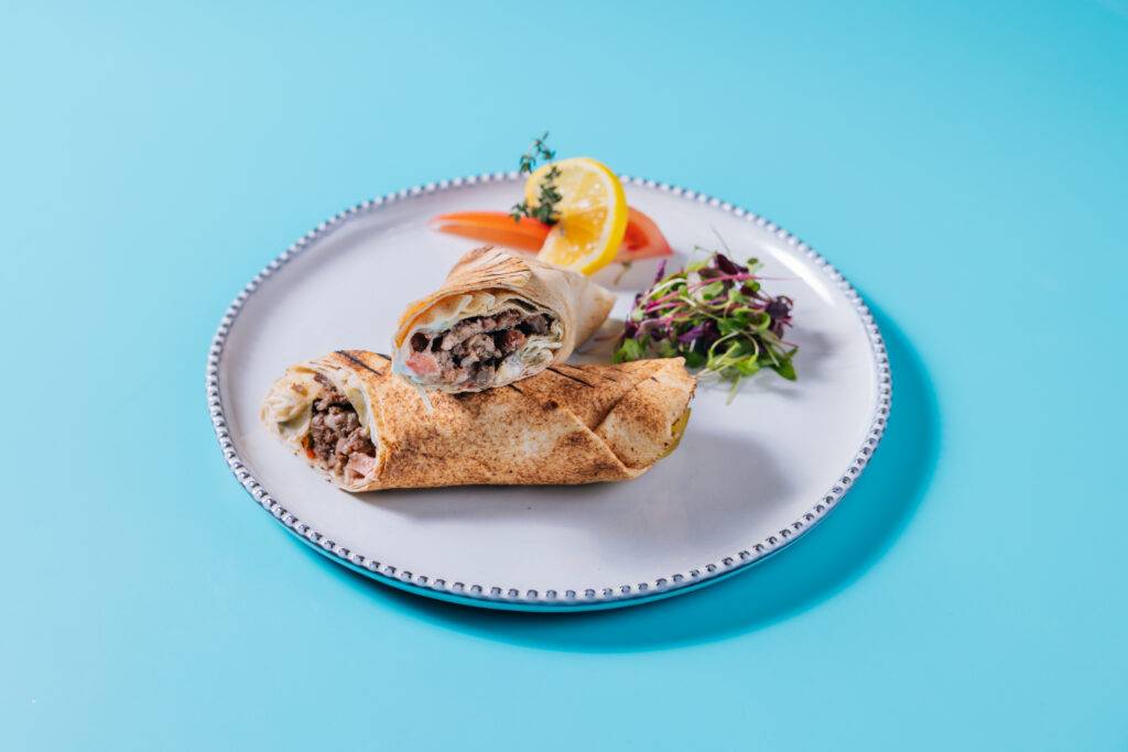 CRISPY FALAFAL, TOMATO, AND CUCUMBER WRAPPED IN LEBANESE BREAD